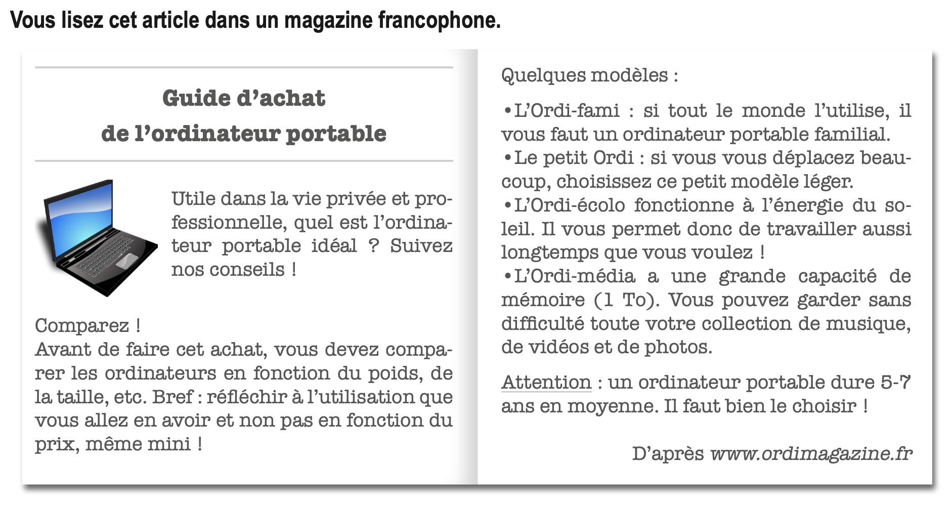 Vous habitez en France et vous voulez acheter un ordinateur. Vous demandez des renseignements dans un
