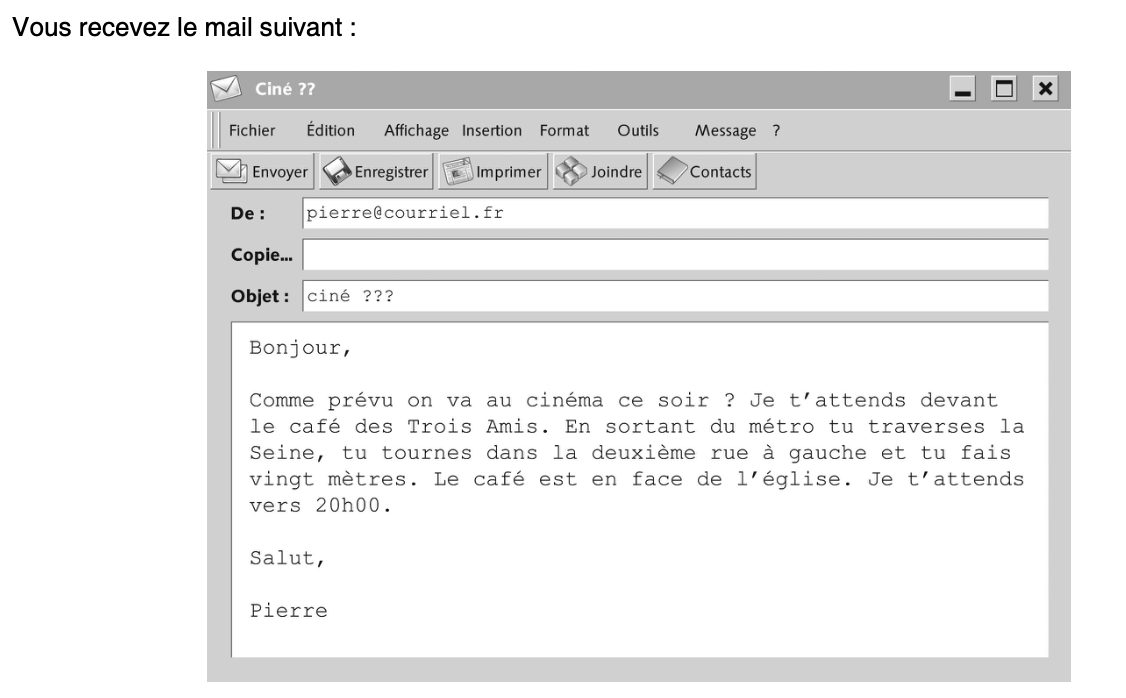 Vous êtes en vacances. Vous envoyez une petite carte postale à un ami en France. Vous lui parlez du temps, de vos activités et vous lui donnez votre date de retour. (60-80 mots)