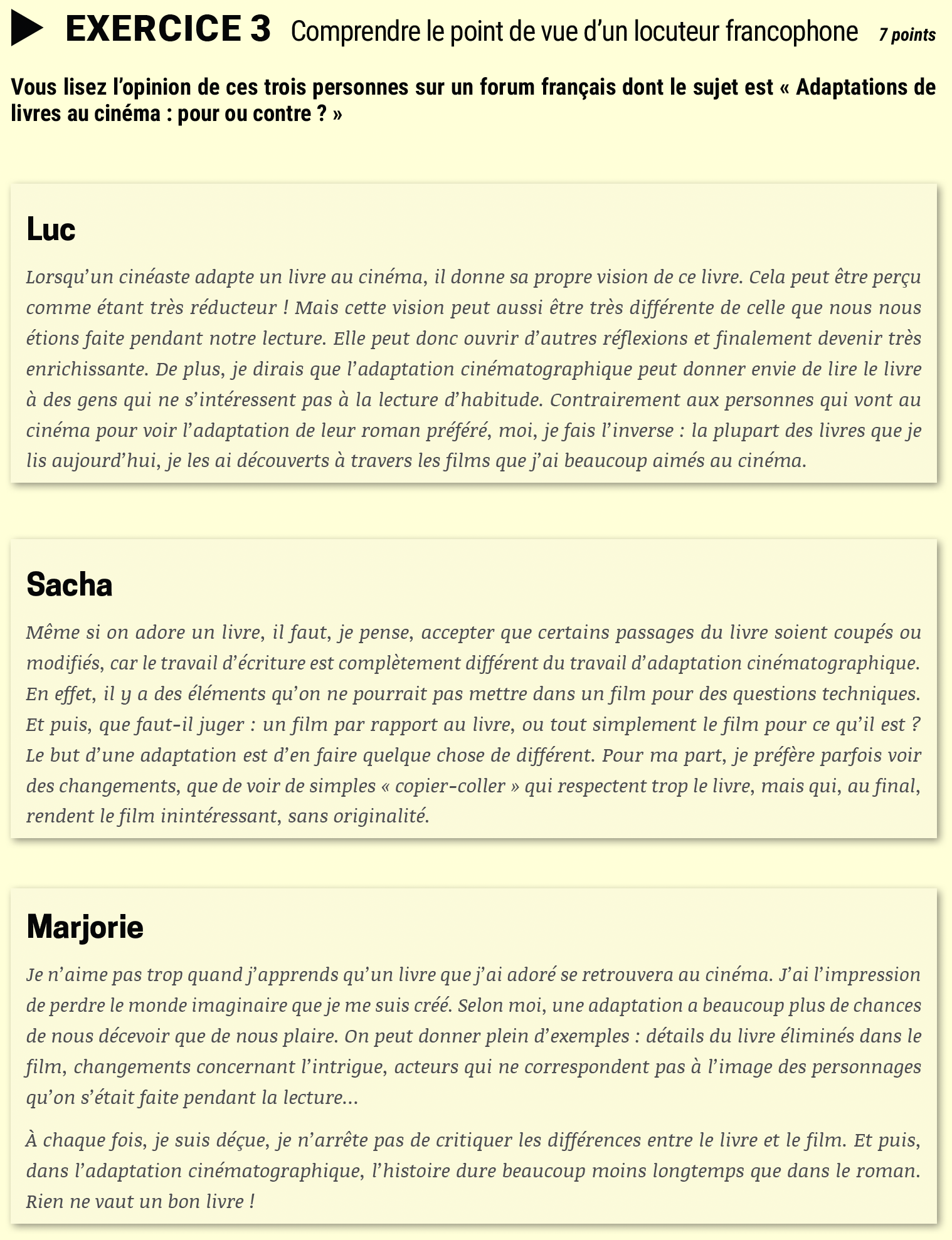 Vous écrirez un texte construit et cohérent sur ce sujet (250 mots minimum). Vous avez une heure.